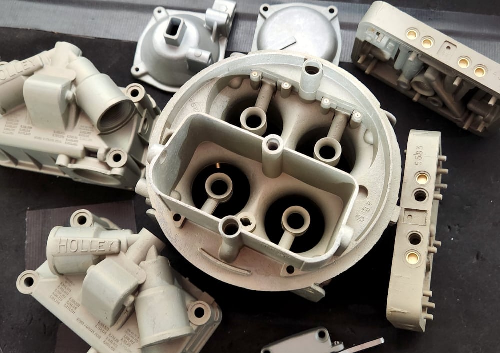 Bringing back vintage Holley carbs is awesome but not always easy. Some of the former 1960s to 1980s racing carbs above are the same in the photo below! Old carbs are like old cars; they and their parts break like the old days. Vintage Holley parts from refinished and ready to assemble and core components in good condition are available for those interested to create their own designs, too; email to see if I have something. These parts are used to repair carbs and resolve incorrect restorations, too. If looking for a restoration or resto-carbo-mod of your carb, I'll let you know if it's not a very costly ordeal or if it needs extensive refinishing / repair.